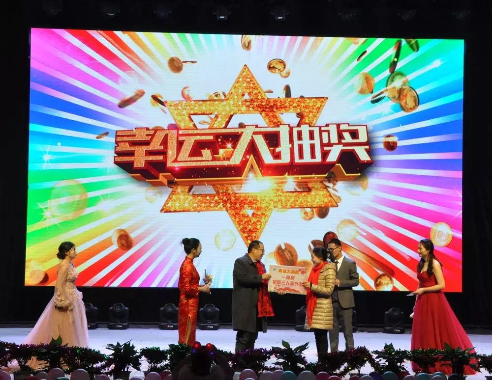 年会里除了精彩纷呈的节目,当然更少不了幸运大抽奖和微信抢红包!便携台灯、按摩仪、年货大礼包、微波炉、感恩父母旅游大奖接连诞生,欢呼声连连。