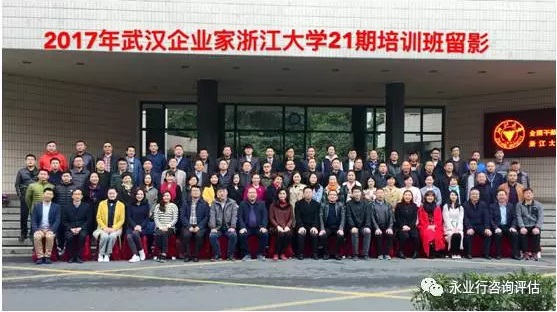 2017年3月21至28日,为期8天的武汉企业家第21期培训班在浙江大学举办,永业行投资咨询事业部总经理文云波、地产顾问事业部总经理郭华以及武汉市各行业的企业家共计83名学员参加了此次培训。