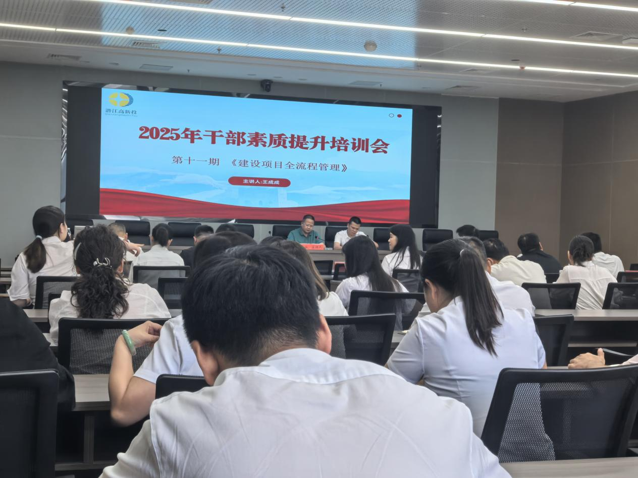 2025年8月15日,潜江市高新技术产业投资开发有限公司(下称“潜江市高新投”)举办2025年干部素质提升培训会。潜江市高新投党委副书记从政、副总经理郭雄出席会议。永业行投资金融事业群工程咨询事业部总监王成成受邀作《政府投资项目的全流程管理及实操解析》专题培训交流。